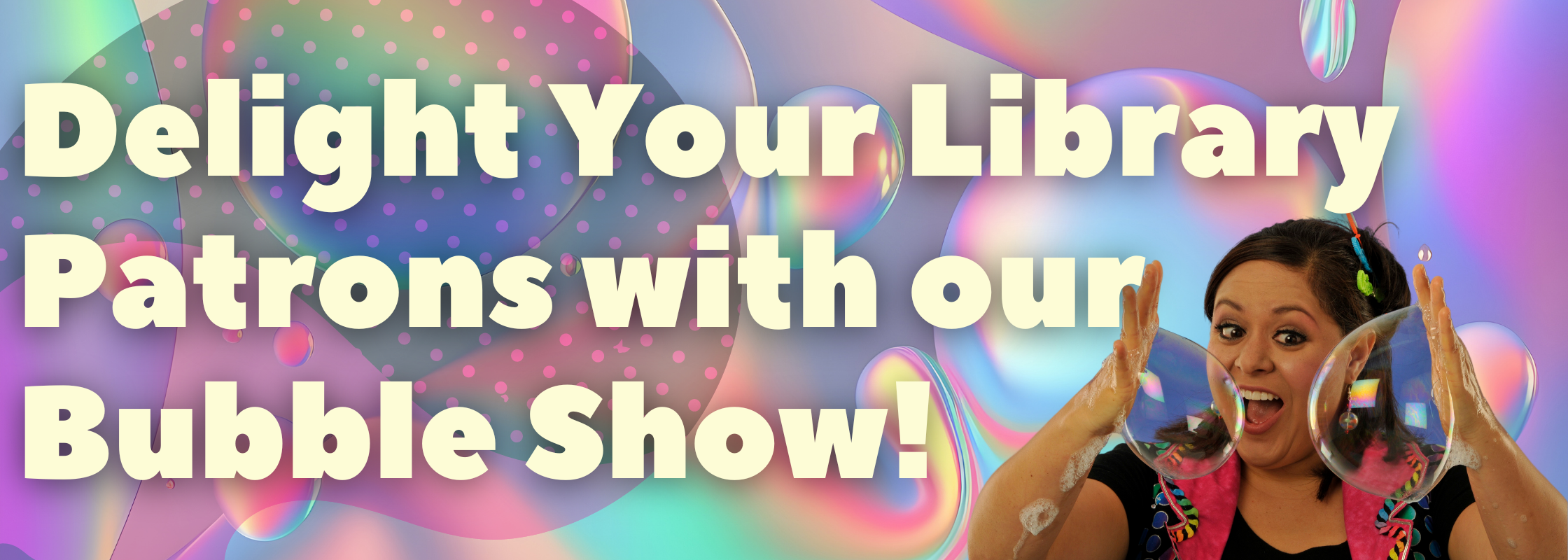 Enhance your library events with Bernie the Bubble Lady's enchanting Bubble Show. It's a perfect addition to your library's storytime sessions, summer reading programs, and special events, Bernie performs captivating bubble tricks, creates giant bubbles, and incorporates music into her performance. Plus, she invites volunteers to step inside a giant bubble, adding an interactive element that delights children and families alike. Libraries also receive a special backdrop to enhance the magical atmosphere. Foster a love for learning and wonder with Bernie’s unforgettable performance, leaving your library patrons talking long after the bubbles have popped.